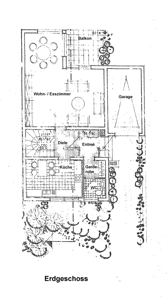 Neben dem Haus befindet sich eine Garage.Das Haus wurde sehr solide in massiver Bauweise errichtet; die Ausstattung entspricht dem Zeitgeschmack der 80er-Jahre; die Haustechnik ist in Ordnung. Vor Bezug des Hauses sind die üblichen Schönheitsreparaturen notwendig sowie zwei Reparaturen, die die jetzigen Eigentümer nicht mehr durchführen lassen möchten.