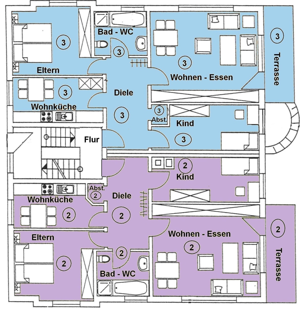 Alle Wohnungen im Mehrfamilienhaus sind ähnlich ausgestattet. Einige Beispiele haben wir mit den veröffentlichten Bildern (in Absprache mit den Mietern) festgehalten. Die Aufteilung entnehmen Sie bitte dem beigefügten Grundriss (Wohneinheit 3).